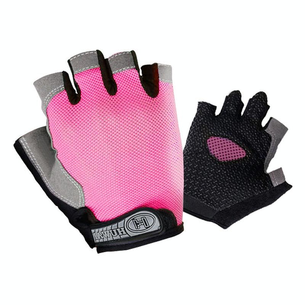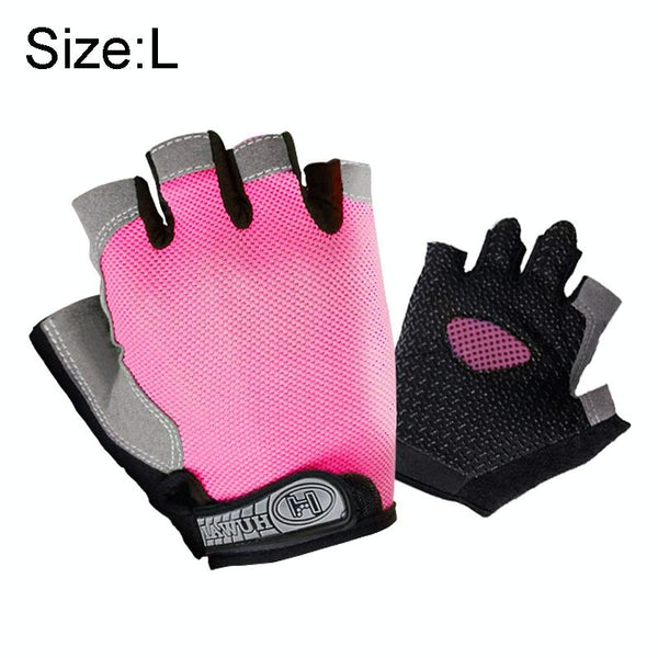 Summer Men Women Fitness Gloves Gym Weight Lifting Cycling Yoga Training Thin Breathable Antiskid Half Finger Gloves, Size:L(Pink)