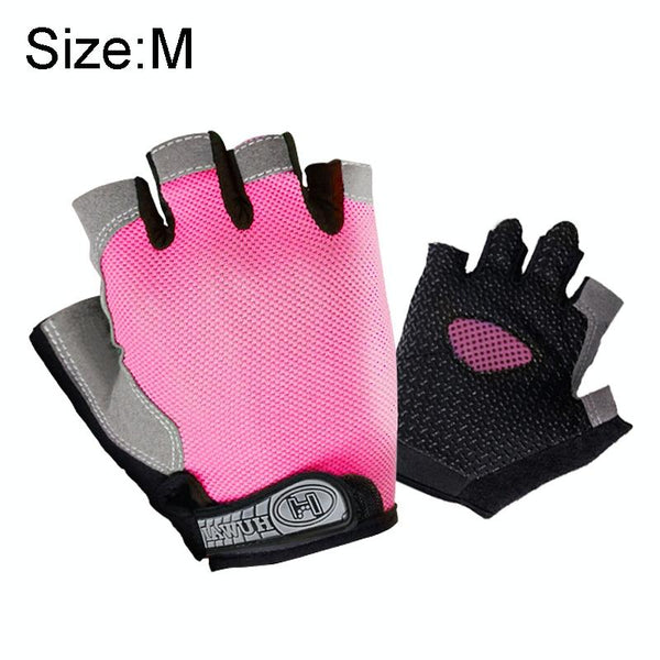 Summer Men Women Fitness Gloves Gym Weight Lifting Cycling Yoga Training Thin Breathable Antiskid Half Finger Gloves, Size:M(Pink)
