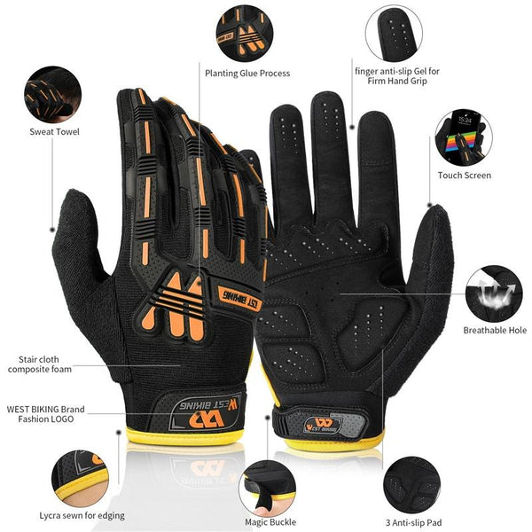 WEST BIKING YP0211208 Riding Gloves Motorcycle Bike Long Finger Non-Slip Touch Screen Gloves, Size: M(Black)