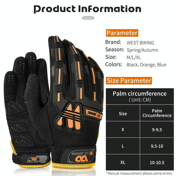 WEST BIKING YP0211208 Riding Gloves Motorcycle Bike Long Finger Non-Slip Touch Screen Gloves, Size: M(Black Orange)
