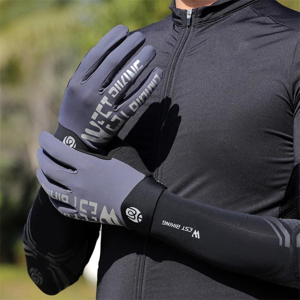 WEST BIKING YP0211214 Long Finger Shock Absorption Non-Slip Touch Screen Gloves Cycling Sports Gloves, Size: M(Fog Blue)