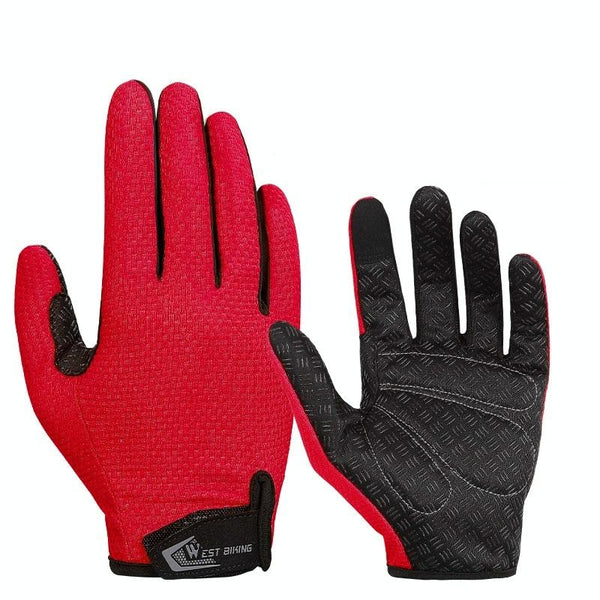 WEST BIKING YP0211223 Full-Finger Gloves For Cycling Shock Absorption Non-Slip Touch Screen Gloves, Size: XL(Red)