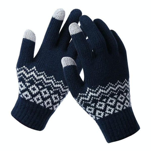 Winter Touch Screen Gloves Women Men Warm Stretch Knit Mittens Imitation Wool Thicken Full Finger Gloves(A-Navy Blue)