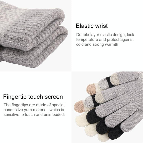 Winter Touch Screen Gloves Women Men Warm Stretch Knit Mittens Imitation Wool Thicken Full Finger Gloves(C-Red)