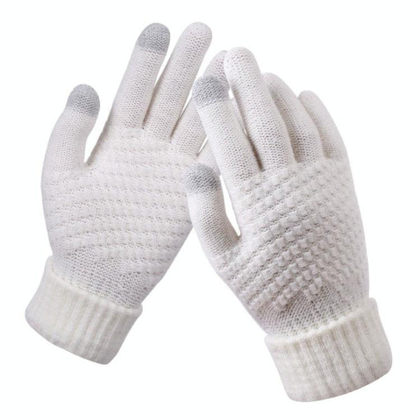 Winter Touch Screen Gloves Women Men Warm Stretch Knit Mittens Imitation Wool Thicken Full Finger Gloves(White)