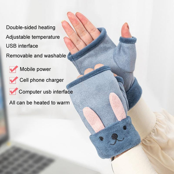 Winter USB Rechargeable Heated Half Palm Adult Gloves, Size: Free Size(Black)
