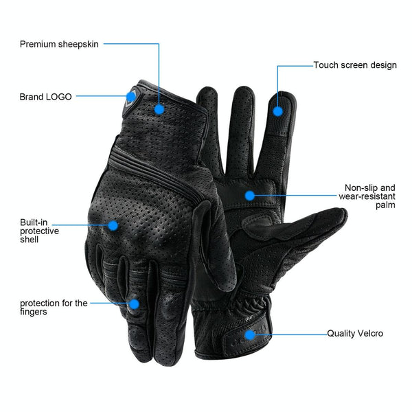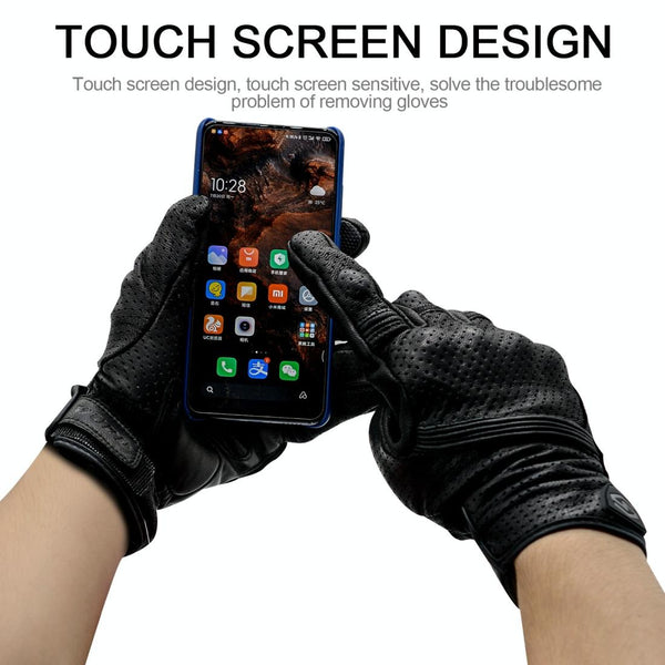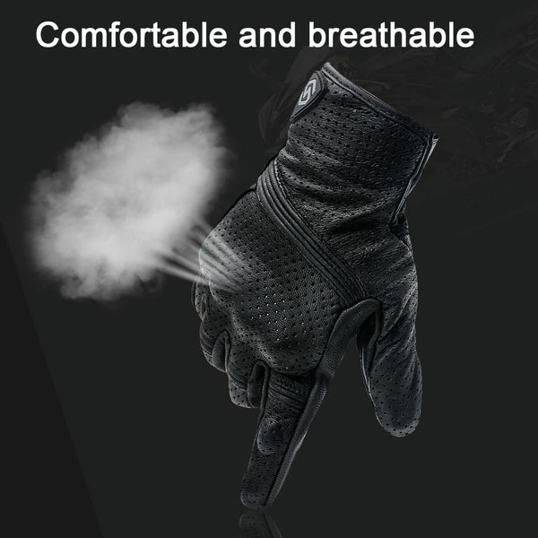 WUPP CS-1049A Outdoor Motorcycle Cycling Breathable Leather Full Finger Gloves with Holes, Size:M(Black)