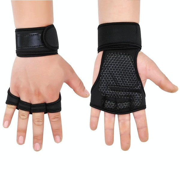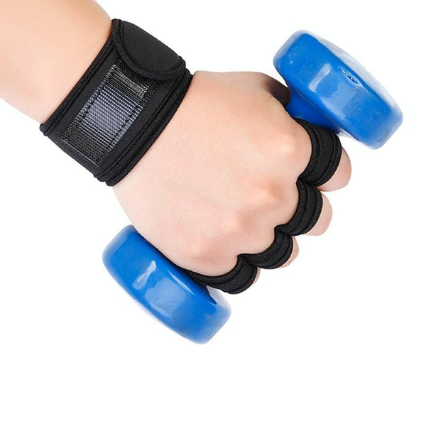 XL Weightlifting Dumbbell Horizontal Bar Anti-cocoon Anti-slip Wrist Fitness Four-finger Gloves(Black)