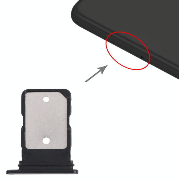 Keywords: Google Pixel 4a, SIM card tray, SIM tray, black, replacement part, repair, mobile phone, cellphone, connectivity