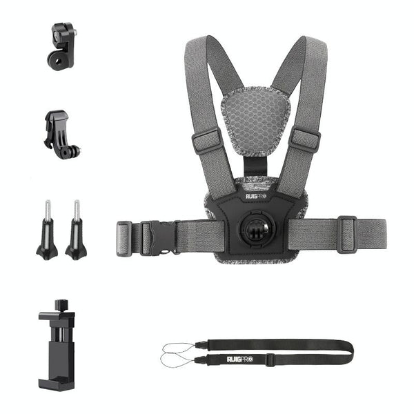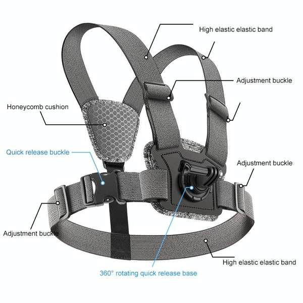 6 in 1 Phone Clamp Adjustable Body Mount Belt Chest Strap with Mount & Screw(Grey)