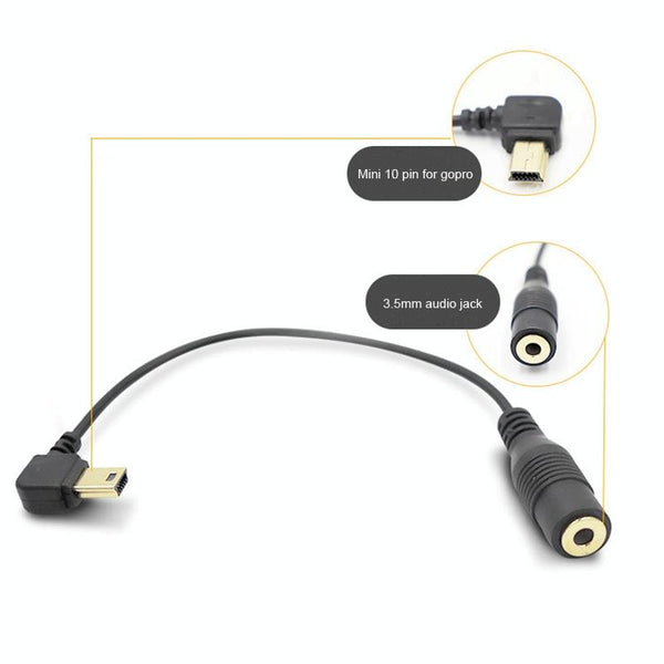 Elbow 10 Pin Mini USB to 3.5mm Mic Adapter Cable for GoPro HERO4 /3+ /3, Length: 16.5cm