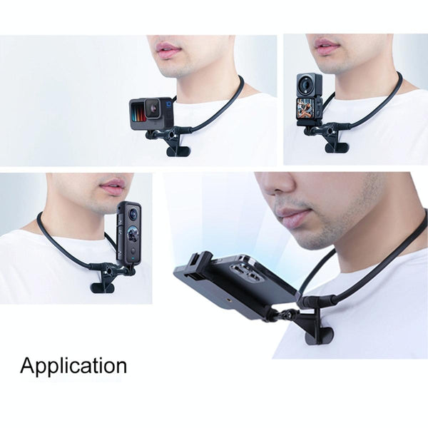 Hands Free Lazy Wearable Neck Phone Camera Holder, Extended Version(Black)