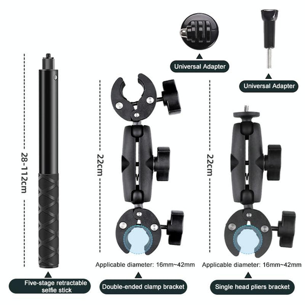 Motorcycle Dual-heads Crab & Single Heads Clamps Handlebar Fixed Mount Selfie Stick
