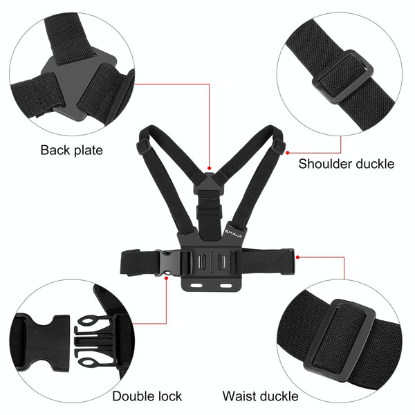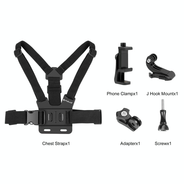PULUZ 5 in 1 Adjustable Body Mount Belt Chest Strap with Phone Clamp & J Hook Mount & Long Screw Kit