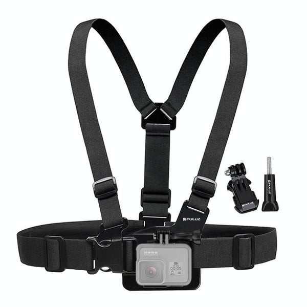 PULUZ Adjustable Body Mount Belt Chest Strap with J Hook Mount & Long Screw for GoPro, Insta360, DJI and Other Action Cameras