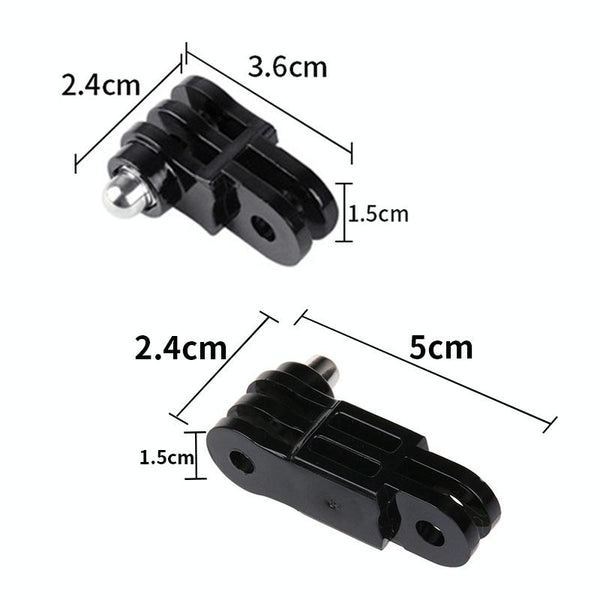 6. Dimensions: same direction short adapter: 3.6x2.4x1.5cm, same direction long adapter: 5x2.4x1.5cm, different direction short adapter: 3.5x2.4x1.5cm, different direction long adapter: 5x2. 4x1.5cm, AEE adapter: 3.7x2x0.3cm
