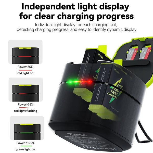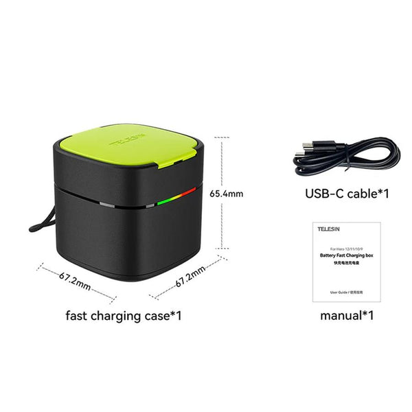 TELESIN GP-FCK-B11 Fast Charged Battery Storage Charging Box For GoPro HERO12 Black / HERO11 Black / HERO10 Black / HERO9 Black(Single Charging Box)
