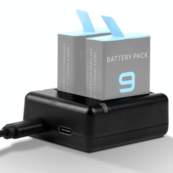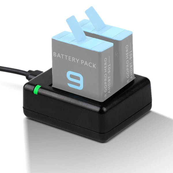 USB Dual Batteries Charger with Cable & Indicator Light for GoPro HERO9 Black / HERO10 Black(Black)