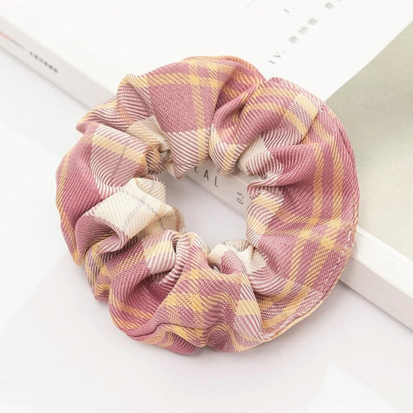 10 PCS Ball Head Ponytail Plaid Large Intestine Hair Tie(Pink)