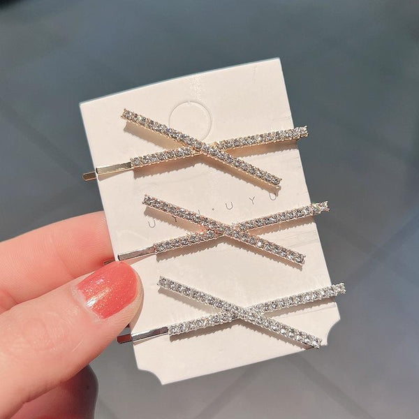 10pcs X-shaped Cross Rhinestone Full Diamond Hair Clip Teenage Girls Headdress(Gold)