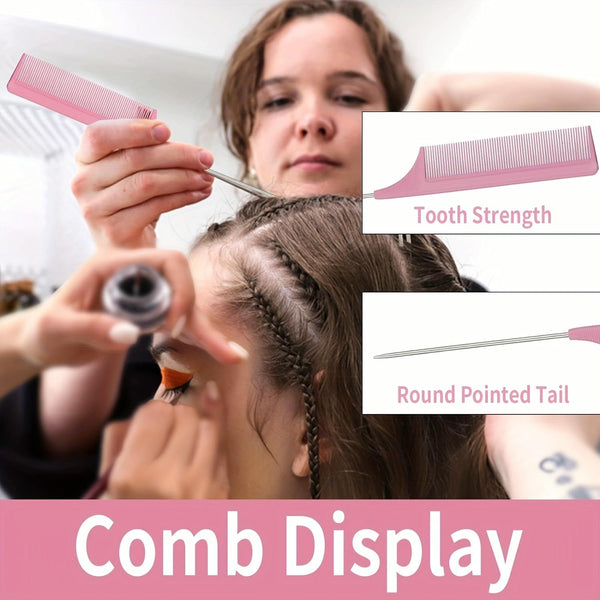 12pcs /Set Hair Combing Brush Set Convenient Styling Comb, Color: Pink With Mosquito Comb