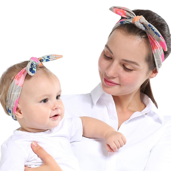 2 in 1 Printed Rabbit Ear Mom Baby Hair Band Set