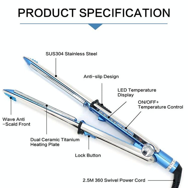 2 in 1 Titanium Hair Straighter Curler Iron(Blue)