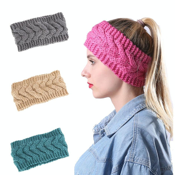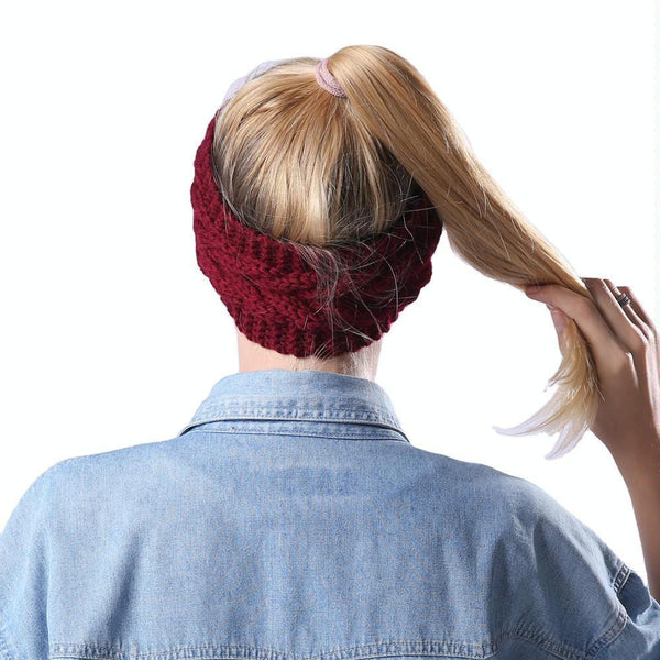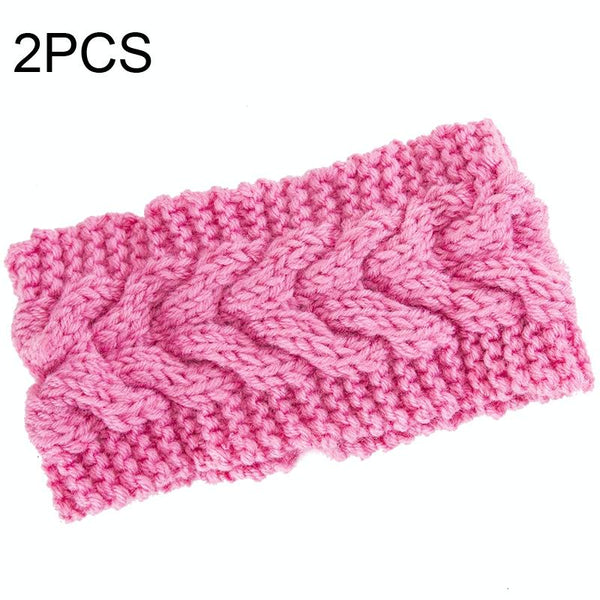 2 PCS Twist Hair Accessories Hair Band Knitted Wool Thickened Warm Headgear(Rose Red)
