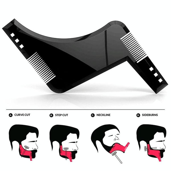 3 PCS Double-sided Beard Comb Molding Template Tool Beard Shaping Styling Tool With Inbuilt Comb(Brown)