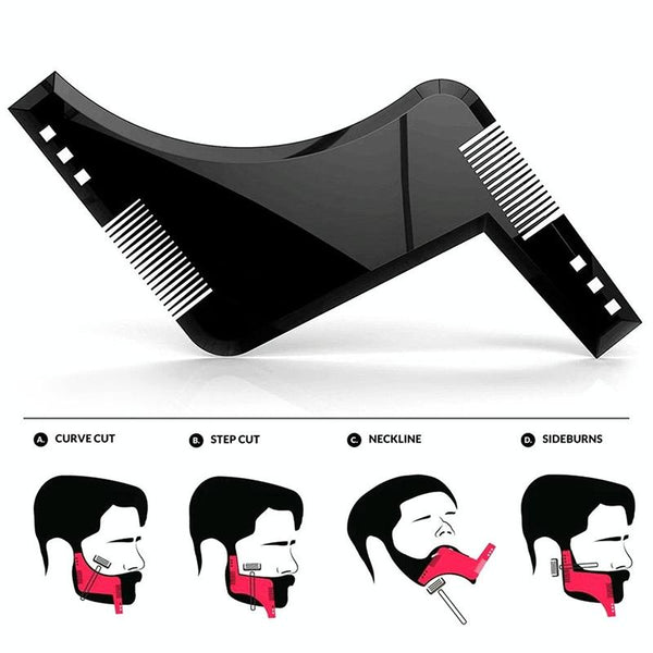 3 PCS Double-sided Beard Comb Molding Template Tool Beard Shaping Styling Tool With Inbuilt Comb(Transparent)