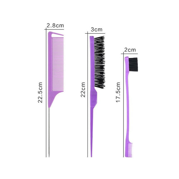 6. Size: flat comb with hook about 22.5 x 2.8cm, bristle comb about 22 x 3cm, eyebrow brush about 17.5 x 2cm