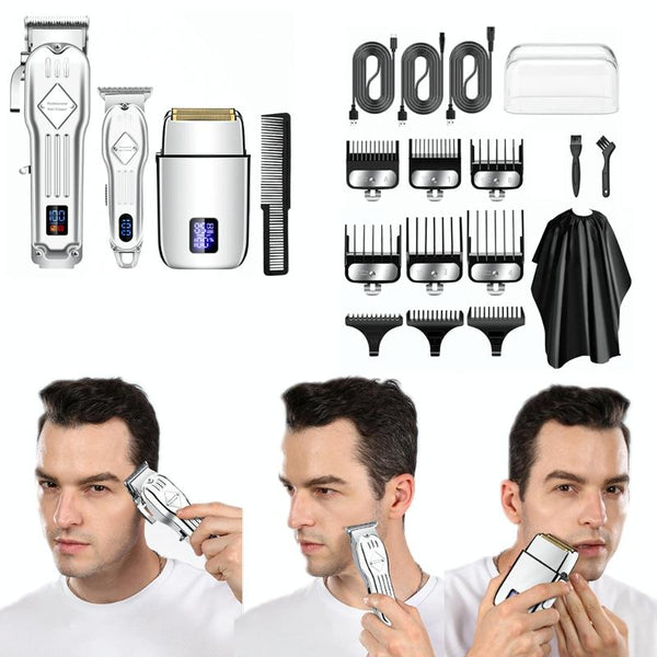 3pcs /Set Men Home Hair Salon High-power Hair Clipper(Gold)