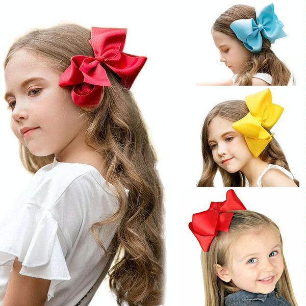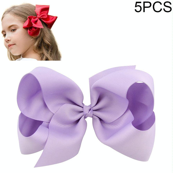 5 PCS 6 Inch Colorful Kids Girls Big Solid Ribbon Hair Bow Clips(25)