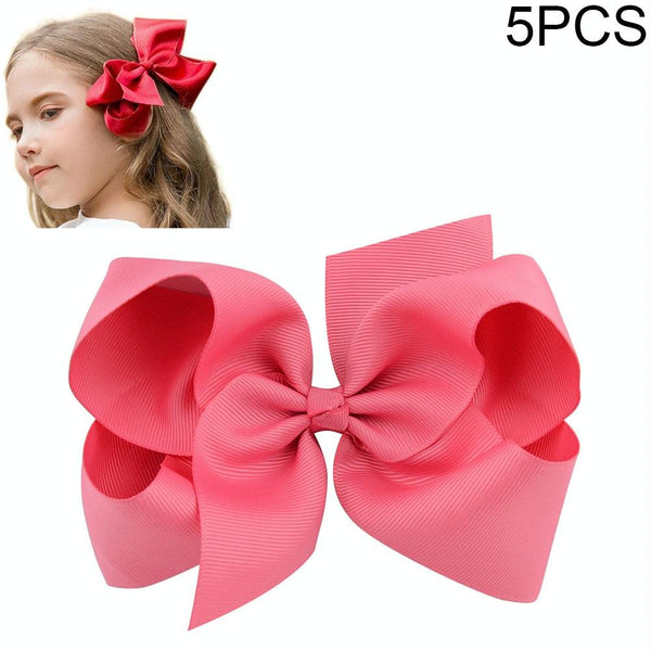 5 PCS 6 Inch Colorful Kids Girls Big Solid Ribbon Hair Bow Clips(27)