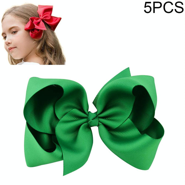 5 PCS 6 Inch Colorful Kids Girls Big Solid Ribbon Hair Bow Clips(38)
