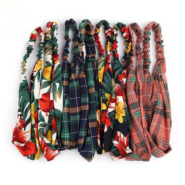 5 PCS Retro Floral Printed Ladies Classic Cross Hair Bands(PinkStripe)