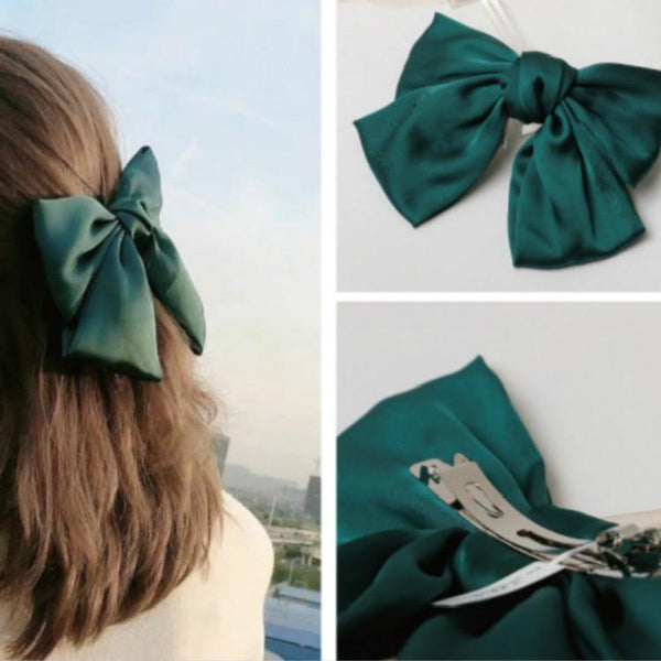 5 PCS Satin Bow Hairpin Back Head Hair Accessories, Colour: Dark Green