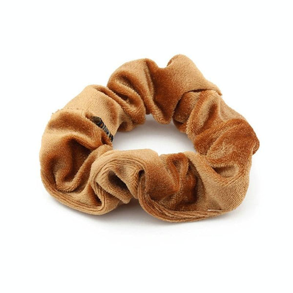 5 PCS Velvet Solid Color Elastic Hair Bands Ponytail Holder Scrunchies Tie Hair Rubber Band Headband(Coffee)