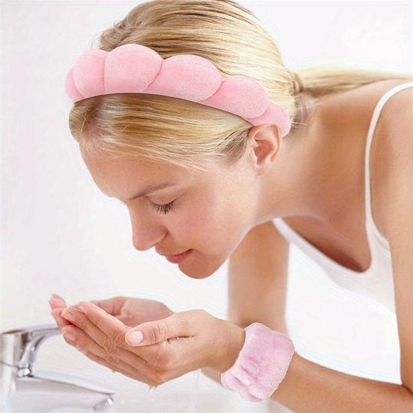 6 In 1 Spa Headbands Hair Claw Clips Set For Women Girls Facial Makeup Turban(Pink)