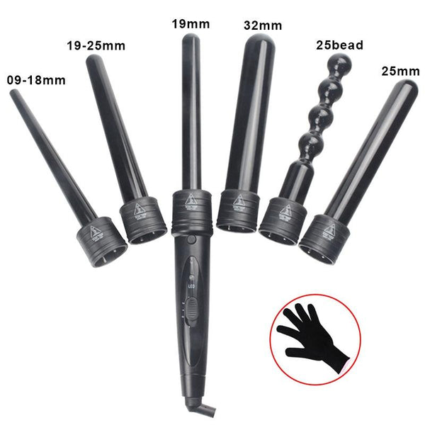 6 In 1 Tube Changed LED Display Tourmaline Ceramic Hair Curler(EU Plug)