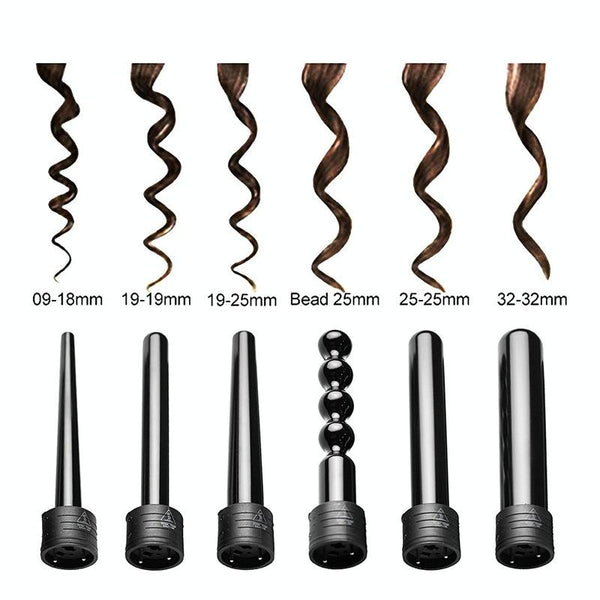 6 In 1 Tube Changed LED Display Tourmaline Ceramic Hair Curler(US Plug)