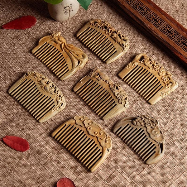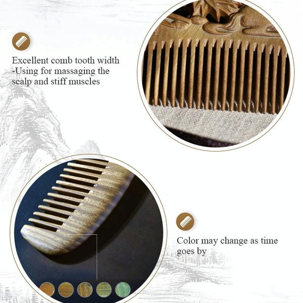 8cm Fox Green Sandalwood Retro Style Carved Portable Wooden Comb