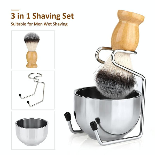 B3004 3 Pcs/Set Men Styling Tools Nylon Beard Brush Rack Foam Bowl(3 Pcs/Set)