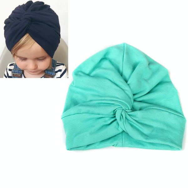 Baby Hat Cotton Soft Turban Knot Summer Bohemian Kids Girls Newborn Cap(Light Green)