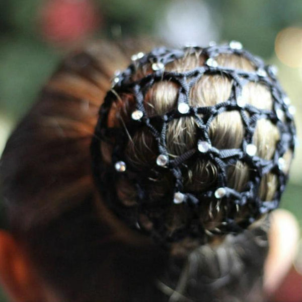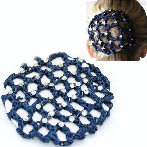 Beautiful Diamonds Bun Cover Snood Women Hair Net Ballet Dance Skating Headwear Accessories(Navy blue)