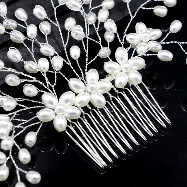 Bride Comb Wedding Handmade Pearl Bridal Women Headwear Jewelry(silver)