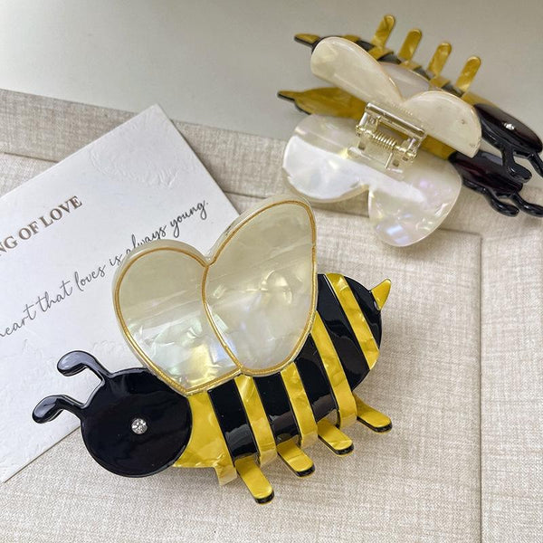 Cartoon Animals Hair Clip Cute Bee Hair Accessories Textured Acetate Hair Shark Clip Headdress(Yellow)