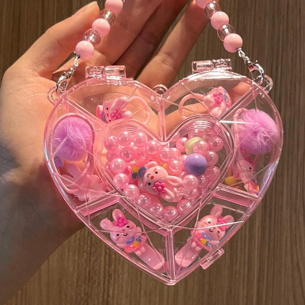 Children Heart-shaped Jewelry Gift Box Set Kids Hairpin Hair Tie Becklace Ring, Style: Rabbit