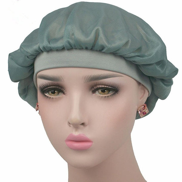 Coconut Nightcap Air Conditioning Cap Long Hair Cap Wide Band Satin Bonnet(Grey)