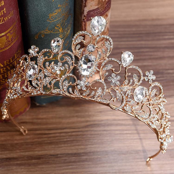 Crystal Wedding Crown Bride Crown Headband Accessories Hair Jewelry Ornaments(Gold White)